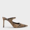 These mules feature an eye-catching snake-print finish, slim buckled straps and stiletto heels. Pair them with a little black dress and let them elevate your after-dark looks to new sartorial heights.