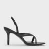 These thong sandals feature a snake-print finish, sleek stiletto heels and adjustable slingback straps. Wear them with relaxed tailoring to create polished looks that will bring you from work meetings to dinner with friends.