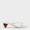 These Sonali mules in burgundy feature slim strappy uppers adorned with dainty bows, open toes and whimsical strawberry-shaped heels. Let them elevate light knits and denim for a fun and effortless weekend look.