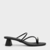 Minimalist and eye-catching at the same time, these heeled sandals are versatile enough to suit most occasions. Featuring a strappy design that is elevated by metallic toe-ring details, this pair in easy-to-match black will see you through the day in impeccable style.
