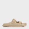 These flatform sandals in brown are made with faux nubuck leather and feature a classic double-strap design embellished with gold-tone studs, shiny oval buckles, contoured footbeds and open round toes. Wear them to add a subtle boho-chic edge to relaxed everday outfits.