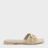 These slide sandals in brown are made with faux nuback leather and feature a buckled single-strap design embellished with gold studs, open square toes and flat soles. Let them elevate casual outfits with their eye-catching details.