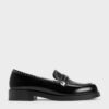 These striking Mary Jane flats give the classic shoe style a refreshing update. Embellished with silver-tone studs on the toe boxes and along the straps, this pair certainly puts an edgy twist on the original schoolgirl footwear. In glossy black, it is timeless and versatile — whether you dress them up or down, these shoes will still make a big impression and be the star of your outfit.