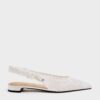 These Tayari slingback flats in white are made with mesh and feature embroidered floral details, intricate beaded embellishments, fabric-wrapped back straps, and sleek pointed toes. Perfect as bridal shoes, they are elegant and comfortable shoes that will work well for any special occasion.