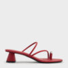 Make a statement with a bold pop of colour — these minimalist heeled sandals will do just that effortlessly. Featuring a strappy design that is elevated by metallic toe-ring details, this pair in deep red will see you through the day in impeccable style.