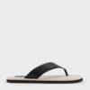 Elevate your summer ensembles with these stylish Trinah thong sandals that have a striking two-tone design. This black-and-beige pair feature thick faux-leather Y-straps that ensure a comfortable and secure fit. Their flat soles also mean that you can walk in them all day with ease.