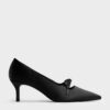 These Venetia pumps in nude feature airy mesh uppers, sheer lace-tie bows, sleek pointed toes and slender stiletto heels. Wear them with soft draped silhouettes to add polish and elegance to special-occasion outfits.