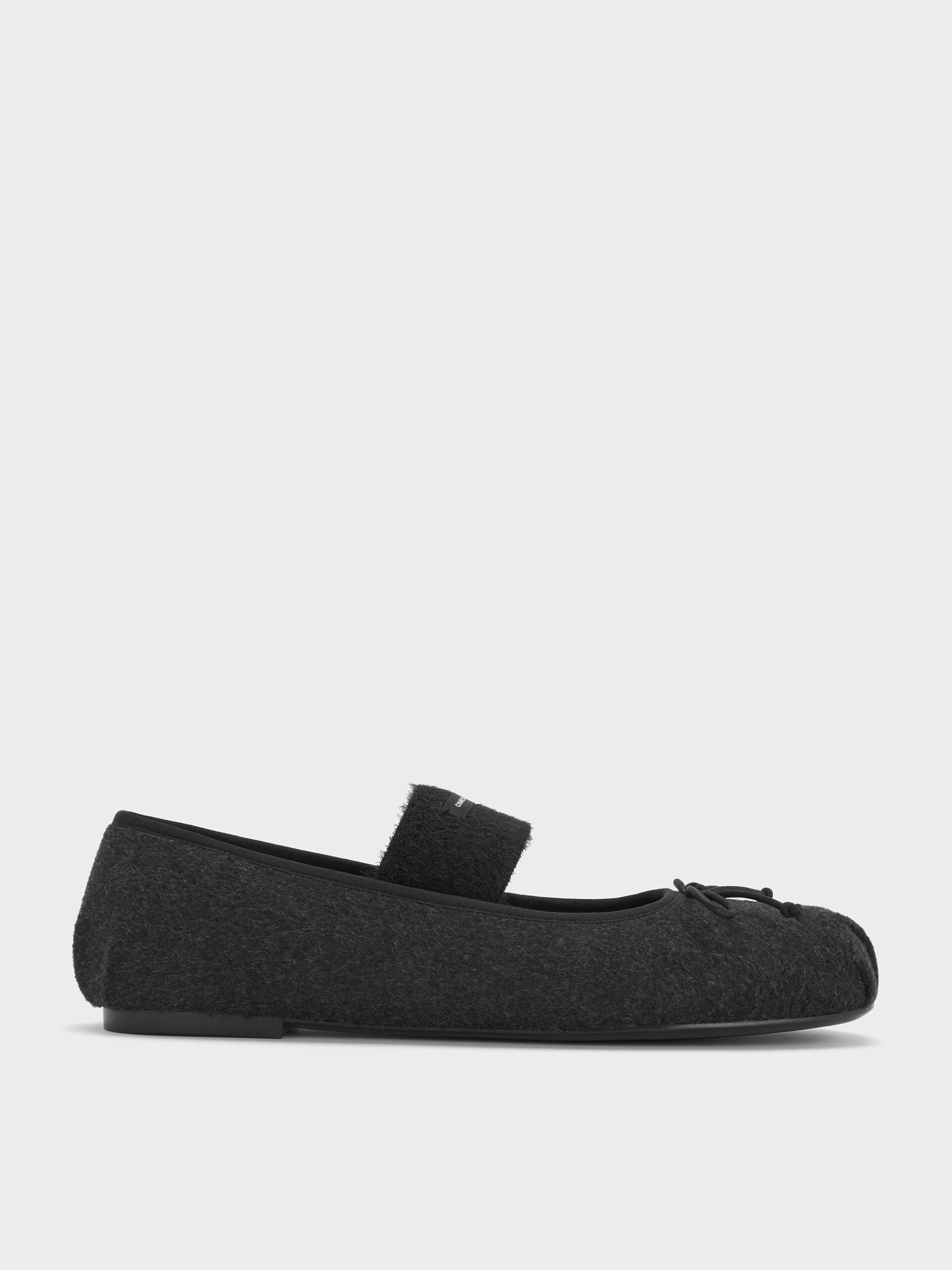 These Winona Mary Jane flats in black are made with felt and feature bow accents, furry straps, rounded toes and flat soles. Wear them with structured basics and socks to create an elevated cosy vibe.