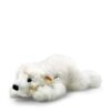 Orville is a fully jointed, contemporary character bear. He has been sewn from a mix of luxurious, shaggy long-pile mohair, in white with a see-through sand backing and honey, with a white alpaca muzzle, tactile faux suede, stitch padded and shaded palms, plus flat soles for pose-ability. He has endearing, white enhanced, glossy black eyes and a hand stitched honey nose, with colour shading to define and shape his appealing face. In finishing, he wears a matching knitted hat and striped scarf in terracotta, chocolate, cocoa and beige all interwoven with gold metallic thread, plus a wide, white brim, silk tassels, bead embellishment and wonderful tassel-button flowers.