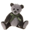 Lace is a 13cm five way jointed teddy bear made from two shades of soft grey plush, he has shiny black safety eyes above his grey thread stitched nose, that matches the grey cord bow around his neck.