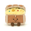 Mrs Jones is a beautifully crafted plush bear with irresistibly soft fur in warm turmeric tones. Her inner ears and the right side of her muzzle are made from soft white plush, adding a charming contrast. She features a hand-embroidered dark brown nose, a delicately trimmed beige and white muzzle and the signature "who, me?" expression that gives her a touch of mischief! Her sculpted paws include adorable tickly toe detailing, making her even more endearing. She is complete with a charming brown bow for her accessory.