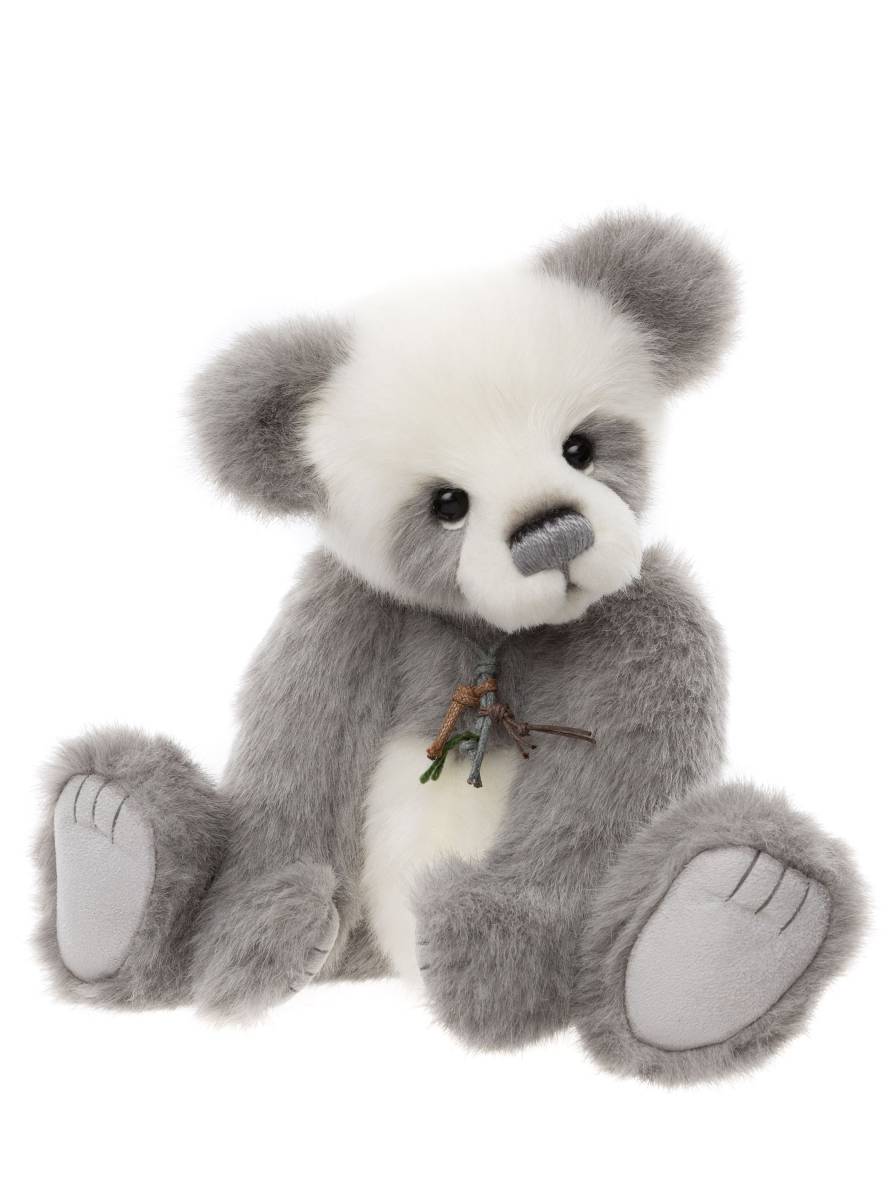This adorable 5 way jointed, 29cm panda bear is crafted from irresistibly soft silvery grey and white plush with a silvery grey hand stitched nose and stitched toes, around her neck she is wearing a knotted cord necklace, she is a must-have for Charlie Bear collectors and panda fans alike!