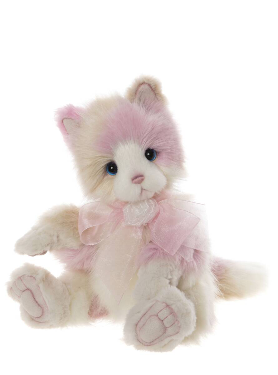 Kitty Kat has been lovingly designed by Isabelle Lee, she is crafted from mid-length plush fur and features a hand-embroidered nose, mouth and toes, plus sculpted paws. Kitty Kat made her first appearance on QVC UK on 03/02/20 and has been a firm fur-vourite since. She is fully jointed and comes with her own organza bow which is beautifully embellished with a hand-made organza rose.