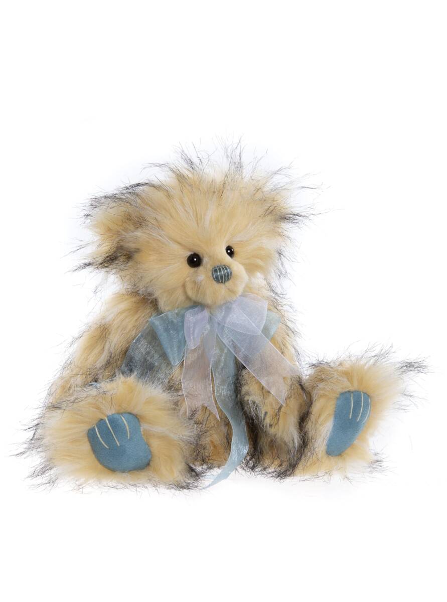 Meet Star Jasmine, measuring 30cm/12'' and made with a five way jointed construction for easy posing. Crafted from soft plush fur in a long fluffy yellow/beige with grey flecks running through the tips with teal blue paw pads and nose, making them an exquisite addition to any plush collection.
