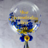 Wish someone congratulations for passing their GCSEs, A Levels or other exams with this fantastic personalised bubble balloon. Fill it with smaller balloons in the colour scheme of your choice, then add your message to the outside. Our bubble balloons are 20″ spherical clear balloons, with a selection of small balloons inside. We then add four small balloons to the base, as well as colour co-ordinated ribbons and a weight. This will last between 7 – 10 days on average, making them a great gift for celebrating success.