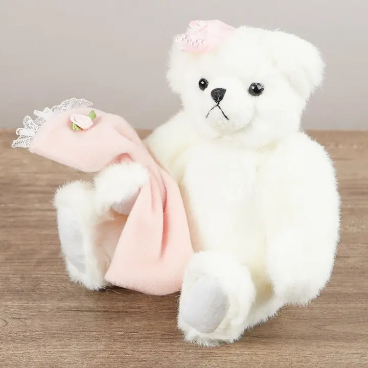 CoopersTown DWBBRLILLY Lilly Bear Plush Soft Toy – 19cm White Jointed with Light Pink Blanket