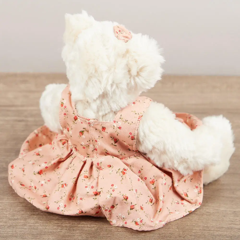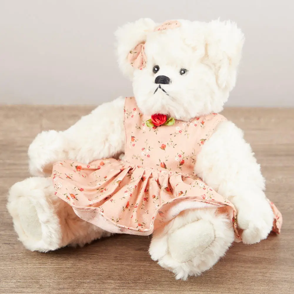 CoopersTown DWRFRANNIE Frannie Bear Plush Soft Toy – 22cm Off-White Jointed with Pink Floral Dress