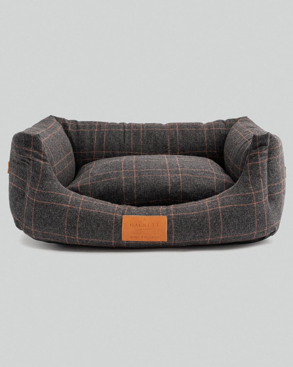 Hackett x Hugo & Hudson. This comfortable dog bed comes in an elegant tweed wool and polyester fabric that provides comfort and support. Details such as a non-slip base for greater stability, leather side handles for easy transportation and removable covers make this bed a must-have for your pet this winter season.
