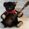 The bear was made to celebrate the centenary anniversary of Deans Rag Book Co and he is a limited edition of 1000 pieces. He is a five way jointed bear made with dense brown mohair and has a shaved face showing his matching backing material underneath. He has 29th June 2003 embroidered onto his paw pad in thread matching his satin bow. He will come to you boxed with his swing tag certificate of authenticity.