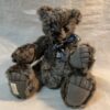 Madame Butterfly is a five way jointed bear created for the Dean's Elite collection with a golden yellow tipped mohair with cross stitched green and golden material paw pads. She is wearing a thin plastic butterfly on her arm and has black glossy eyes.