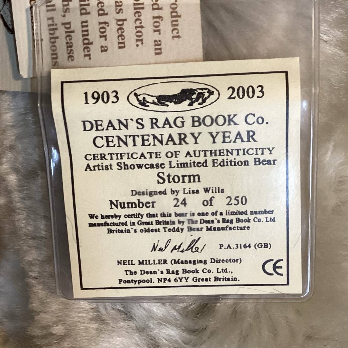 He will come to you with his original Dean’s tags, including his limited edition certificate tag. Storm is number 24 of 250.