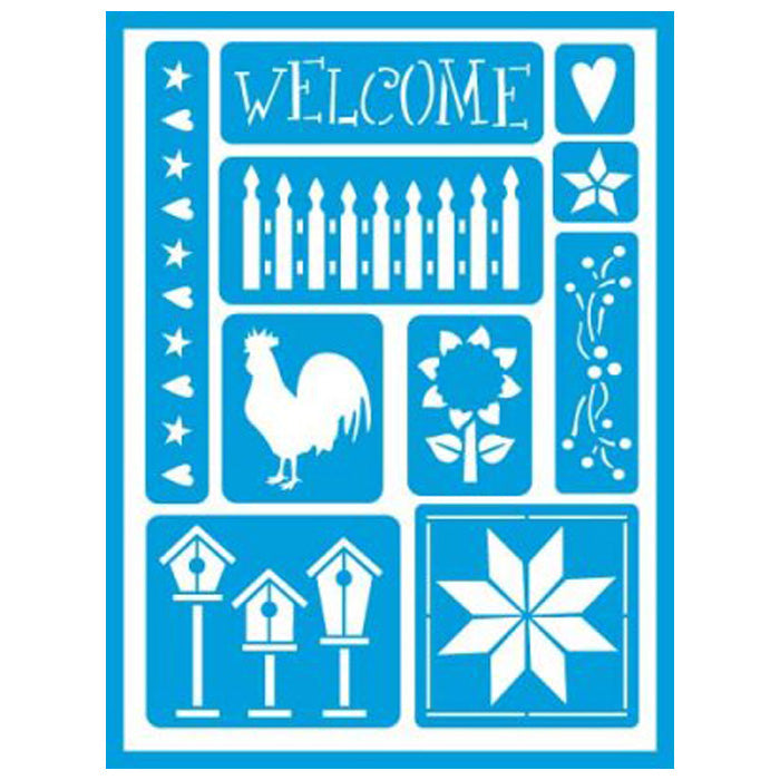 DecoArt Country Stencil from World of Craft. Country – Decoart Americana Gloss Enamels Stick On Stencils -Country design. Decorative stencils for glass and more! Soft, flexible stencils specifically designed for curved and flat smooth surfaces. Self-adhesive allows for repositionability and eliminates potential for paint to bleed. Delivers a professional looking end result with clean, crisp edges. Painting Surfaces:. Glass – Ceramic bisque – Tile – Wood – Vases – Coffee mugs – Ornaments – Wine glasses – Terra cotta pots – Jewellery boxes – Decorative plates – Birdhouses – Storage containers – Monogram letters – Decorative plaques – Drinking glasses. Features and Advantages:. Repositionable. Reusable. Easy to remove. Excellent adhesion. Additional Decorating Ideas/Applications:. Ornaments. Vases. Holiday decor. Frames. Coffee mugs. Personalized gifts. Helpful Hints:. Begin with a clean dry surface – Apply paint with palette knife, dauber, brush, or cosmetic sponge – Cut slits into border of stencil to make it easer to wrap around complex curves – Use a toothpick or a razor blade to scrape away unwanted paint and rough edges. Dimensions = 6 by 8 inches. Sold as a Single Pack. Use DecoMagic Brush Cleaner immediately after use to prevent paint buildup. AGS210-K. MPN AGS210-K