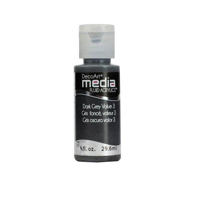 DecoArt Dark Grey (Media Paint) from World of Craft. Media Fluid Acylics are highly pigmented and formulated to deliver professional artist performance for all skill levels at an affordable price. Fluid acylics are intermixable, durable and permanent with superior adhesion. Use alone or mix with mediums to create various textures and unique effects. The range includes traditonal, metallic and interference colours. Adheres to Wood, Walls, Canvas, Terracotta, Styrofoam, Paper, and unglazed ceramic. Also in the range are a selection of compatible mediums including antiquing creams, Mister applicators, Modeling paste, Texture Paste, Gesso, Matte Medium, liquid glass, crackle products and varnishes.Please note that the DecoArt catalogue has this colour listed as Perytene Green which is not correct!. DMFA22-26. MPN DMFA22-26
