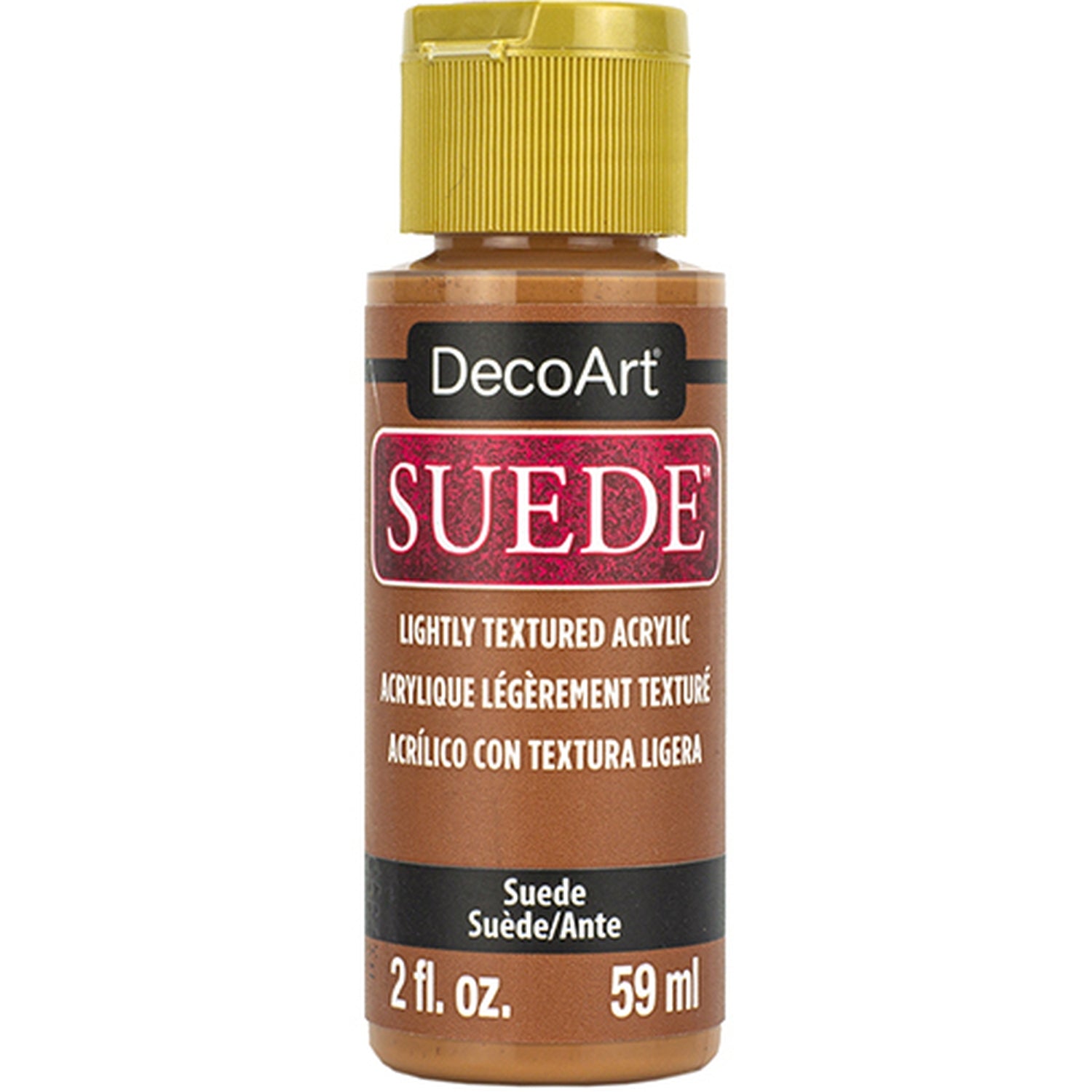 DecoArt Suede – 2oz. from World of Craft. DecoArt Suede adds the rich, indulgent look of brushed suede to craft projects. This lightly textured acrylic easily transforms your project with subtle dimension that instantly summons memories of these velvety, warm textures. DecoArt Suede Varnish adds a clear, velvety-matte finish to any DecoArt Suede project. This durable topcoat fuses with the paint to provide a strong layer of protection against daily use. Works on wood, walls, canvas, terra cotta, paper, styrofoam, unglazed ceramics. Sold as a single 2oz bottles. MPN DSU12-30