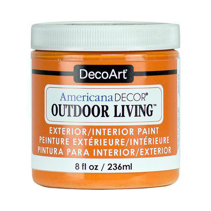 DecoArt Sunset Outdoor Living from World of Craft. Outdoor Living paint is a fantastic product for transforming any furniture piece in an easy cost effective way. Adheres to Concrete, Terracotta, Masonry, Wood, Metal(check out CLDAADM14 metal Primer), plastic, Glass and more. The Metallic shades are perfect for adding a gentle accent to a piece or for bold statement piece. No sealer required, Corrosion resistant, Eggshell finish, Excellent water resistance, scuff and fade resistance due to lightfast pigments. ADOL08-30. MPN ADOL08-30