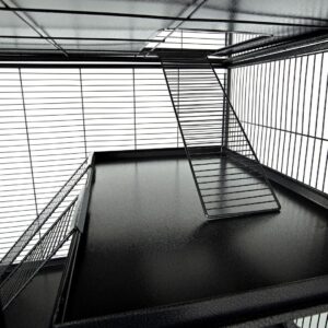 The Aventura Cage is a spacious, secure, and stylish habitat designed for rats, ferrets, chinchillas, and degus. With a durable powder-coated wrought iron frame, multiple levels for climbing, and secure latches, this cage ensures your pets have a comfortable and safe home. The smooth-rolling castors allow easy mobility, while its sleek modern design blends seamlessly with any home decor.