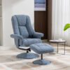 A classy Soft REAL LEATHER recliner with stool. The Denver is a sleek, luxurious swivel recliner in gorgeous soft and strong real semi-aniline leather – the best material for any furniture. Also available in 6 lovely fabrics. Based on the hugely successful Biarritz chair, the Denver is finally here in real Leather! Colour Availability as of 03/12 Mushroom In stock Cinder In stock Olive Green Low stock Petrol Blue In stock Brown In stock Earth Out of stock And I will not be beaten on price! Call me up to 2100 at night, 6 days a week, and I will match anybody’s price! High-grade Soft and Strong Fabric. Rich colour palette. Sleek finish. Luxurious recliner at a sensible price A substantial chair with wide seat and high back Excellent support for the head and lumbar Made with high grade real leather with Plush PU on all the non-contact areas, helping to keep the price down Matching round base with coloured insert Comes with matching footstool Plenty of width. High back. Full-body support. This substantial chair offers plenty of seating width, as well as a high back that will cater for taller customers. It also provides full support for the head and lumbar, whilst the accompanying footstool ensures your feet and legs are not neglected! Lean back and the chair smoothly reclines; to fix it in position simply tighten the spindle located under the seat-pad. 360-degree swiveling. True rotational freedom. Take it for a spin. This chair swivels a full 360 degrees, giving you complete flexibility. Features Soft and strong, easy clean leather Round matching base Steel frame Manual recline Supports up to 18 stone Medium assembly required