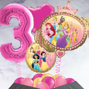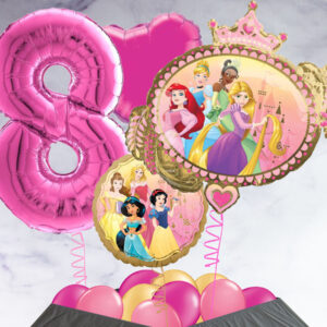If you’re planning a Disney Princess themed birthday party, this balloon package is an essential decoration, inflated and ready to go. The stand out is the 34″ Disney Princesses foil balloon with a crown on top, which sits alongside a smaller 18″ Disney foil with more princesses featured, and a pink heart foil. Our balloon bundle is suitable for any age – simply choose your foil number options when purchasing and we’ll do the rest. The foil numbers stand 26″ high, making them a great decoration for the big occasion. To finish, we add ten small scatter balloons in a matching colour scheme, great for finishing your decorations.