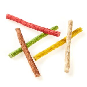 These delightful chew rolls come in five vibrant colours, ensuring that your pet enjoys a variety of flavours and textures. Designed to keep your dog entertained, these munchy rolls are not only a tasty reward but also help promote dental health by reducing plaque and tartar build-up.