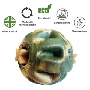 Crafted from durable, toughened recycled plastic, this treat ball is built to withstand the enthusiastic chewing of your beloved pet. The moulded insert sections make it easy to throw and pick up, ensuring hours of interactive play. With a centre hole for treats or a stick, your dog will be kept engaged and motivated to play.