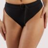 Sun, sea and the bikini of dreams, this 50s inspired black bikini brief has that perfect vintage pin-up vibe. The Bettie Page swimwear collection is designed to accentuate your curves with classic silhouettes. The Jayne bikini features a flattering high waist fit and tortoise shell belt. Pair with the matching top to complete the look.