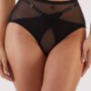 This ultra-strappy number is bound to get hearts racing! Featuring classic black mesh with fishnet crossover panels, and satin elastic harness detail. The waist strap is adjustable so you get the ideal fit.