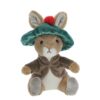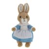 Mrs Rabbit is a soft toy character bunny. She has been crafted from a gloriously soft plush, in a dense, semi-fluffy light brown, with a contrasting white tummy and a fluffy pom-pom tail, plus velvety inner ears, with enhanced, twinkling safety eyes and sweet stitched features. She wears a non-removeable long-sleeved sky-blue cotton dress with white cuffs, a white broderie anglaise shoulder cape and a white apron, completing her look.