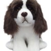 The Boston Terrier is 30.5cm/12" head to tail measured along back, and part-filled with beans, for that comforting, cuddly appeal. He has been sewn from a mix of luxurious and sleek, short-pile plushes in white, cocoa tipped pale caramel and dark brown for his ears and eye tears. Clever use of stitch-work and fabric folding have crafted the breeds unique facial features, whilst two-tone brown eyes, with a moulded black nose, plus delicately applied colour shading for his inner ears, muzzle/mouth and chest adds definition and character, giving him a friendly demeanour.