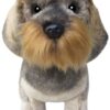 The Maltese is a fluffy white sitting dog with a red satin bow around his neck. He has a black molded nose and is part bean filled for a nice squishy and cuddly feel.