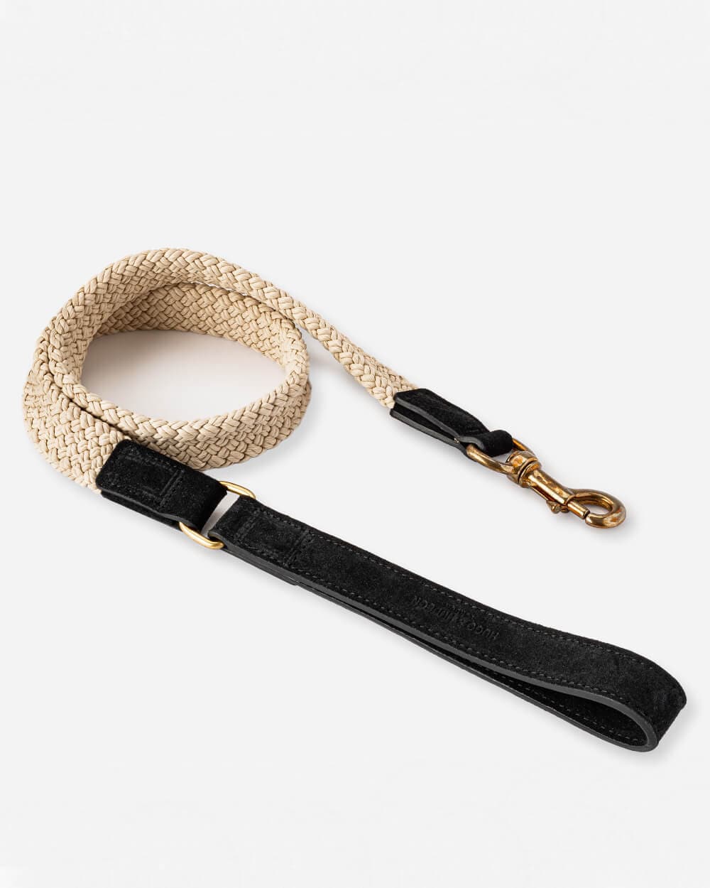 This elegant Flat Rope and Leather Dog Lead in black from Hugo & Hudson combines style and strength for the perfect pet accessory. Handcrafted in Italy from premium leather and flat rope, it features a strong metal buckle and the Hugo & Hudson embellished logo for an unmistakable look. Make your pup a style star with this timeless lead!