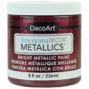 Garnet Red Metallic Folkart 2oz from World of Craft. FolkArt Metallic Acrylic Paint is a premium, artist-quality acrylic paint, perfect for all your DIY decorative craft paint and home decor projects. Its rich, thick, creamy texture ensures smooth brushability for exceptional blending, highlighting and shading, and unmatched versatility for strokework, stenciling and other design techniques on a wide variety of porous surfaces, such as wood, canvas, tin, terracotta, fabric, and paper mache. With a beautiful metallic finish, FolkArt Metallic Acrylic Paint is acid-neutral, water-based, and non-toxicaking cleanup simple with soap and water.