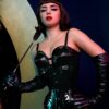 Black PVC overwire bra and suspender belt, vinyl fetish underbust corset and classic mesh briefs