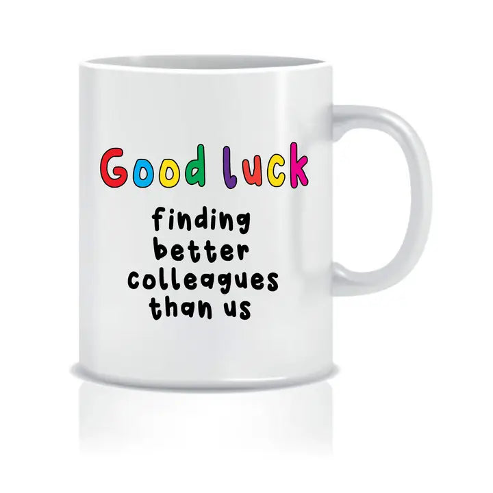 Good Luck Finding Better Colleagues Than Us Mug is the perfect humorous and heartfelt gift for a departing coworker, combining practical use with fun memories.