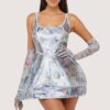 Turn heads and make an entrance from the bedroom to the bar in the ‘Gracie Renaissance Boned Underbust Dress’! This romantic blue floral mini dress is tailored from sensuously sheer lustrous mesh and features satin panels to the front. The close fitting scoop neck bodice is structured with white boned princess seams, which allow the thigh fluttering tulip hem skirt to kick out at the waist. Thick shoulder straps are adjustable at the back, which fastens with a long zip.