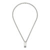 The GG motif makes a comeback on a range of everyday pieces, offering a modern aesthetic and effortless wearability. The shiny sterling silver base is adorned with an engraved logo and dot design, treated with a special coating to minimize oxidation. Featured here as a tag pendant, it hangs elegantly from a chain necklace. Size: 50cm – 55cm
