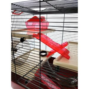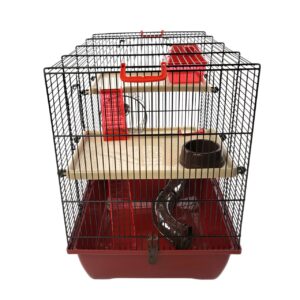 The Hamster Cage Grand 50x45x33cm – Maroon with Accessories | Little Friends is a spacious and fully-equipped enclosure, designed to provide comfort, security, and enrichment for hamsters and other small pets. With 8.5mm narrow bar spacing, this cage ensures safety while preventing escapes, making it ideal for smaller rodents.
