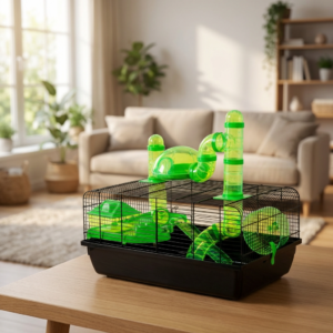 The Hamster Cage Landmark 58x38x29cm – Green with Accessories | Little Friends is a high-quality, modular habitat, designed for hamsters and other small pets. Manufactured in Europe, this cage offers exceptional durability, security, and ventilation, featuring 1cm super narrow bar spacing to prevent escapes while maintaining airflow.