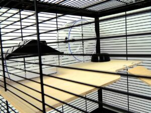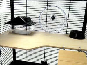 Built with super narrow 1cm bar spacing, this cage prevents escapes while maintaining excellent ventilation. It features a large top door (68cm x 38cm) and a small front door (11cm x 12.8cm) for easy access and interaction. The Langham cage comes complete with 1 hideaway house, 2 exercise wheels, and 2 bowls, providing everything needed for your pet’s comfort and activity.