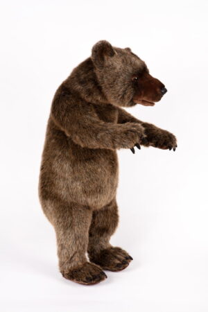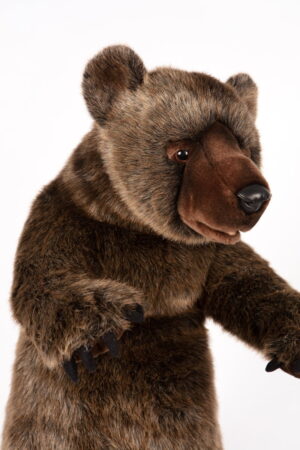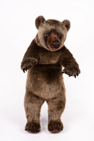 This fabulous Grizzly Bear, is 36x38x85cm, soft cuddly toy by the creators of realism – Hansa. He is made from a wonderfully tactile, dense tipped plush with a moulded nose and claws, hooded eyes and internal leg supports. Fine airbrushing, producing facial shading and creating definition, have all been applied by hand. Surface wipeable.