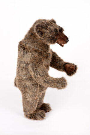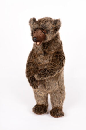 This gentle looking Grizzly Bear, is 24x20x50cm, soft cuddly toy by the creators of realism – Hansa. He is made from a wonderfully tactile, dense tipped plush with a moulded nose and claws, hooded eyes and internal leg supports. Fine airbrushing, producing facial shading and creating definition, have all been applied by hand. Surface wipeable.